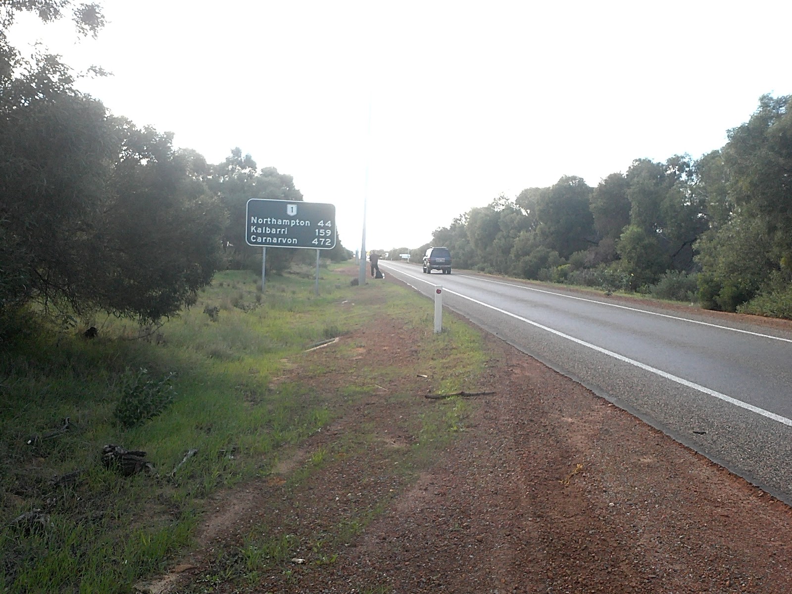 The next guy was a year younger than me (although he thought I was younger). He had a bunch of tattoos (some of which he’d done), built custom bikes (the reason he’d been in Perth), worked as a DJ, had done some work in security and was now working in the airport. He’d also travelled a surprising amount of Australia. He dropped me at the Geraldton maccas (so cheap) at two pm but said he could drop me off at a backpackers. I’m now on the side of the road somewhere north of there. Grumpy is probably a word that would come to mind. I’m just glad it’s not raining.